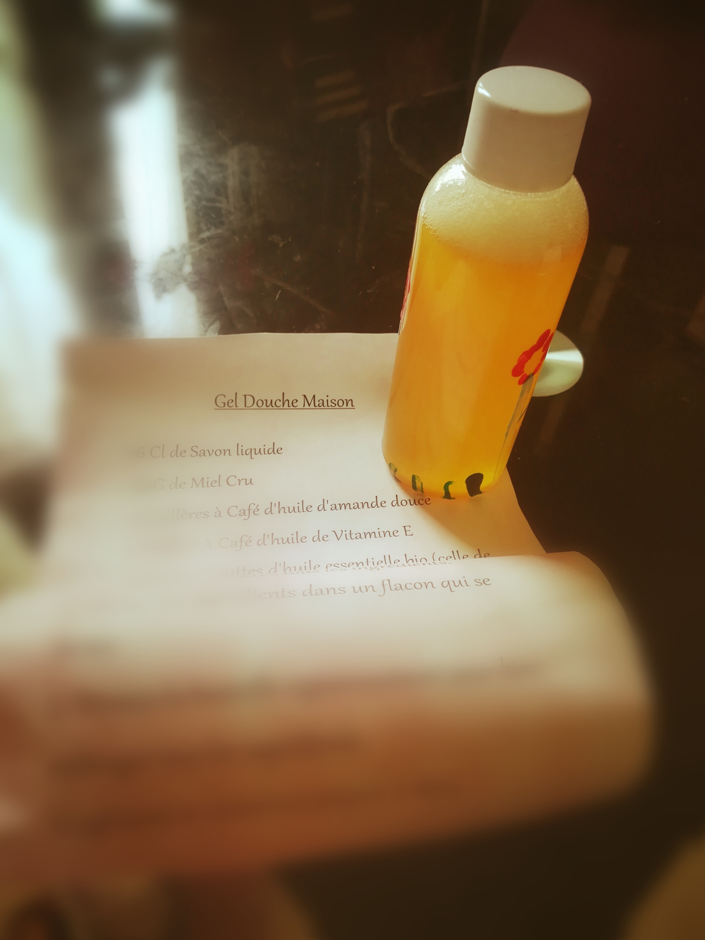 Il s’agissait d’un petit flacon peint à la main rempli de gel douche fabriqué par elle-même lors d’un atelier choisi au périscolaire. Trop chou ! Et ça tombe bien, elle sait combien sa maman est adepte des produits et cosmétiques naturels.
